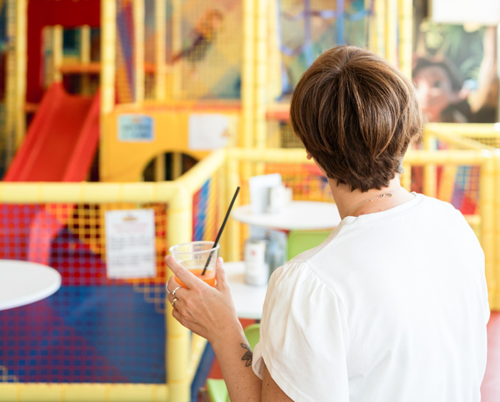 L’area genitori vi aspetta con tavolini e sedie adiacenti alle aree gioco per godervi un momento di relax, restando comodamente vicini ai vostri bambini mentre giocano.
