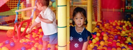 Mille palline coloratissime creano un mare divertente dove i bambini possono rotolare, saltare e inventare avventure.